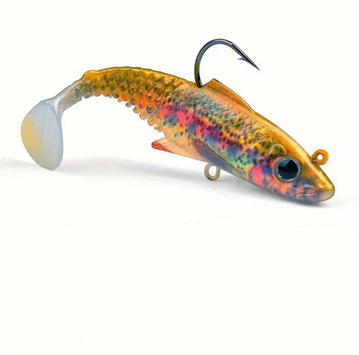 🔹 Design Réaliste : Corps détaillé avec des couleurs naturelles, des reflets métalliques et des yeux 3D ultra attractifs. La finition soignée imite une proie blessée, irrésistible pour les brochets, sandres, perches ou black bass.